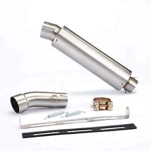 Suzuki SFV Gladius 650 Titanium GP Exhaust Do you want to give your bike the sound and look of a real GP bike? Don't look any further! The Danmoto Titanium GP muffler is a race inspired exhaust, made with the same technique as the real MotoGP exhausts. It has a deep, throaty sound you will enjoy. Every exhaust is completely hand crafted by one of our skilled technicians. The sleeve is made from Grade 1 Titanium with a Satin Finish. Mid pipe, end caps and inner construction of the exhaust are completely SS304 Stainless steel. All welds have been done by a TIG welding expert. This exhausts offers massive weight savings over the original exhaust. The muffler is less than 1kg; including mid pipe and all mounting hardware it's in total just about 2kg. The mufflers have 300mm sleeve length and 90mm OD. Every Danmoto Exhaust is developed specially for each bike. Installation of this exhaust requires no fuelling adjustments/tuning. It gives an instant power increase over stock of average 4%. With adjusted fuelling even more is possible. If you want to see/hear the exhaust on the bike, please visit YouTube and search for "Danmoto". Hundreds of happy customers uploaded videos of our exhausts on their bikes. The exhausts are sold as open "Race Version" without Baffle. This does not mean these are just empty pipes which sound like a tin can.Inside the exhaust is a bike specific core with a packing of long lasting fiber material, specially composed for this application. An additional baffle is available, which reduces the noise level but keeps the nice tone and rumble. Scope of delivery: 1 Set = 1 muffler, 1 mid pipe, Mounting hardware Note: If your bike is equipped with an O2 (lambda) Sensor in the muffler section, you need to purchase an additional O2 Sensor Eliminator.Our Danmoto Exhausts come without Bungs for O2 sensors.